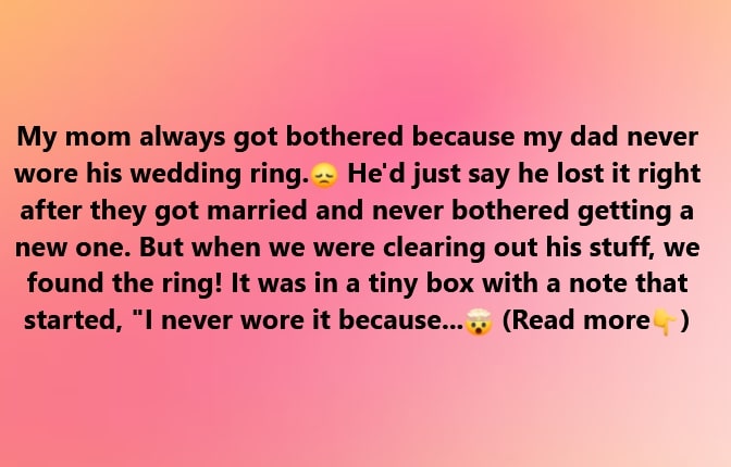 Beneath the ring was a folded note in his handwriting. The paper was fragile, the ink faint but still readable. As I unfolded it, Mom leaned over, silent. The note was short, but it changed everything we thought we knew about that old joke.