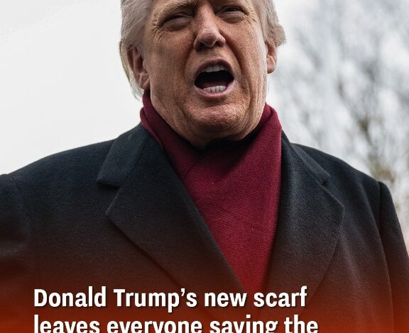 Donald Trump’s latest appearance sparked a wave of unexpected commentary online—not because of a speech, a policy proposal, or a headline-making moment, but because of a scarf. The former president stepped out of the White House wearing a long black wool coat and a burgundy scarf neatly wrapped around his neck, a look far removed from his usual uniform of dark suits, bright ties, and familiar styling. It was a small shift, but one that caught everyone off guard.