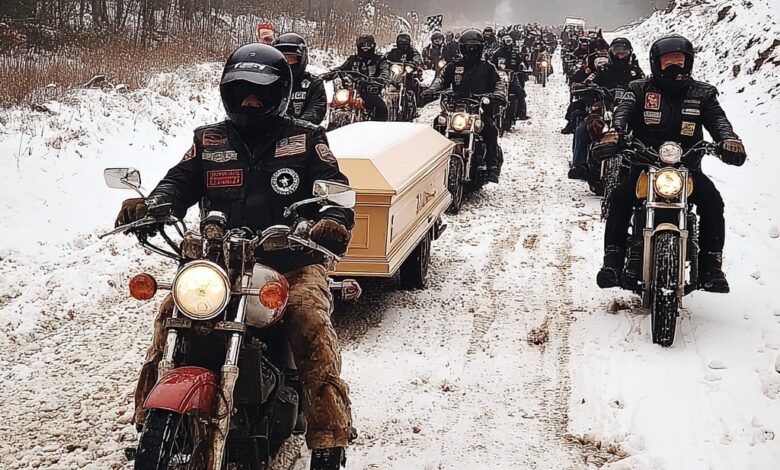 At noon, with temperatures hovering around 18 degrees, they set out. Danny’s flag-draped casket rested inside a custom-built motorcycle hearse—an enclosed sidecar rig designed to protect fallen riders on their final journey.