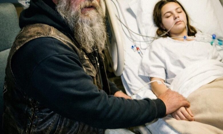 For six straight months, at exactly three o’clock every afternoon, the same man walked into my daughter’s hospital room. He was impossible to miss—tall, broad-shouldered, a gray beard spilling down his chest, leather vest, heavy boots, tattoos curling around scarred hands. He never stayed a minute longer than an hour. He never spoke to me beyond a quiet nod. He held my comatose daughter’s hand, talked to her softly, and then left.
