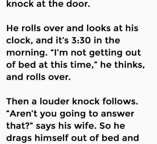 Not a polite knock. Not the kind you assume is a mistake. This was deliberate, heavy, and confident, like whoever was outside genuinely believed this was a reasonable hour to interrupt someone’s sleep.