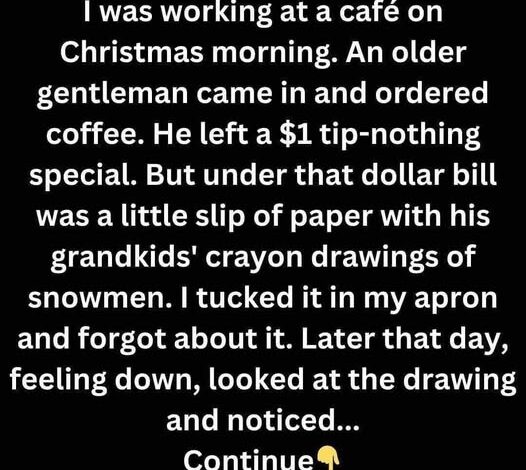 When I reached to pick up the dollar, I noticed a small folded piece of paper tucked beneath it. I assumed it was a receipt or maybe a grocery list he’d accidentally left behind. I slipped it into my apron pocket without thinking and went back to work.
