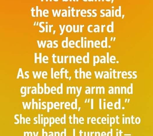 That night, when I got home, I took out the receipt and set it on my nightstand. The word “PAID” stared back at me. I kept thinking about that server — how she didn’t owe us anything, how she could’ve ignored the situation completely. But she didn’t. She saw the discomfort, the awkwardness, the fragile pride of a man trying not to look foolish — and she quietly fixed it.