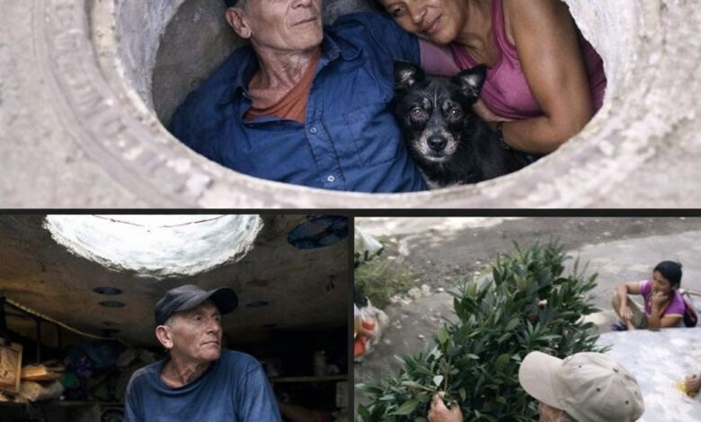 For one couple, accompanied by their dog, that reality has taken on a form that is both stark and revealing. Their shelter is not an apartment, a rented room, or even a temporary facility. It is the hollow interior of a large concrete drainage pipe—an object designed for infrastructure, now repurposed into a place to live.