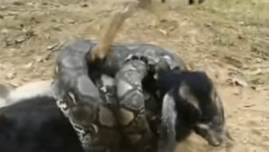 A python had wrapped itself around a small goat, squeezing the life out of it in the way only a…