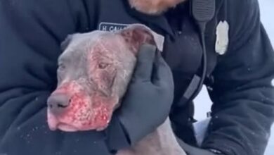 The call was for an aggressive dog on a freezing, remote road, When the officer arrived and saw him!