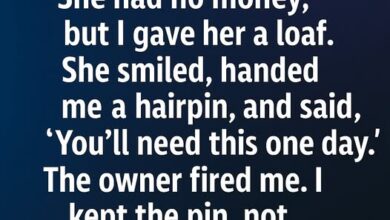 It was almost closing time when the bell above the bakery door gave a soft chime, breaking the quiet rhythm…