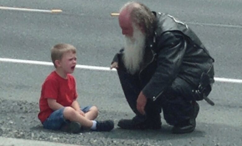 I’m Big Mike. Sixty-four years old. Been riding since I was eighteen. Vietnam vet. Beard, tattoos, the whole package people cross the street to avoid. That kid wasn’t scared of me for a second. He hummed while his fingers traced the emblem on my tank, calm for the first time since being dumped.
