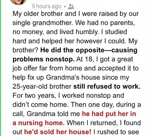 I took them seriously. My older brother didn’t. While I spent nights studying under the dim kitchen light, he spent his running with the wrong crowd. Grandma never gave up on him, but disappointment lived quietly in the wrinkles around her eyes. Still, she loved him with the same fierce tenderness she showed me. When I turned eighteen, I got a job offer in another city—a rare opportunity with good pay and a chance to finally give something back. I promised her I’d save enough to repair the roof, fix the porch, and maybe even replace the ancient furnace that coughed all winter. She cried when I left, proud but worried. My brother stayed behind, still adrift, still promising he’d “figure it out soon.”
