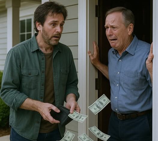The wallet slipped from my hand and hit the porch. The bands broke. Money fanned across the boards like leaves.