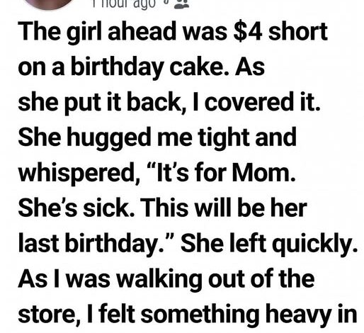 She couldn’t have been more than eight or nine years old. Small, quiet, standing near the bakery section with a box in her hands. It was a simple cake, nothing elaborate—white frosting, a bit uneven around the edges, the kind you’d pick up for a small celebration. She held it carefully, almost protectively, like it mattered more than it should.