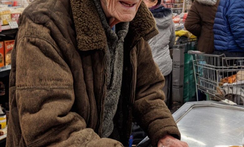 An older man stood in the express lane, shoulders hunched, jacket thin and worn. His groceries were the bare essentials: bread, peanut butter, milk. Items that told you everything about a person’s finances without saying a word.