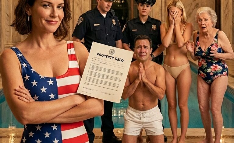 She feigned a stumble. The glass tilted, and dark red wine cascaded down onto the pristine white marble of the cabana, splashing onto my dress and feet. The glass shattered with a sharp crack that silenced the ambient music of the pool deck.