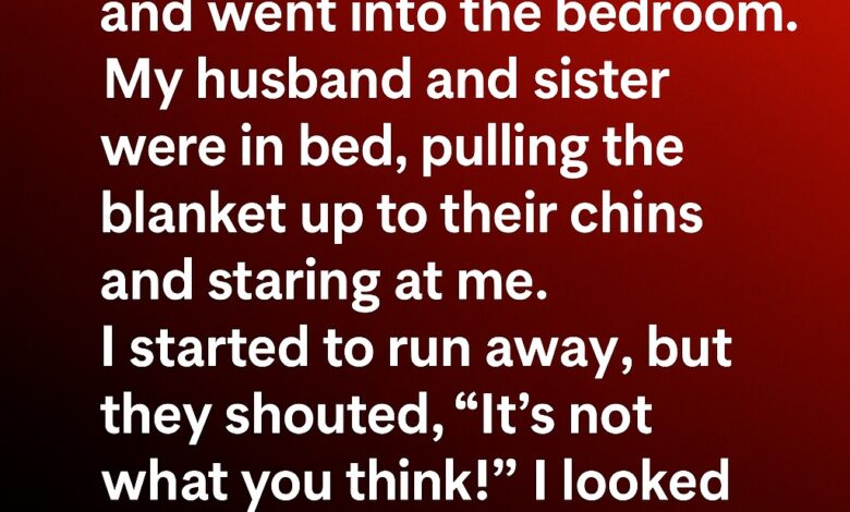 When I finally found my voice, it came out broken and raw. “What is this?” I asked, though I already thought I knew. Neither of them moved. My husband’s mouth opened, closed, then opened again. My sister reached for the blanket, then froze, as if unsure what to do. And then, at the exact same time, they both blurted out, “Wait! It’s not what you think!”