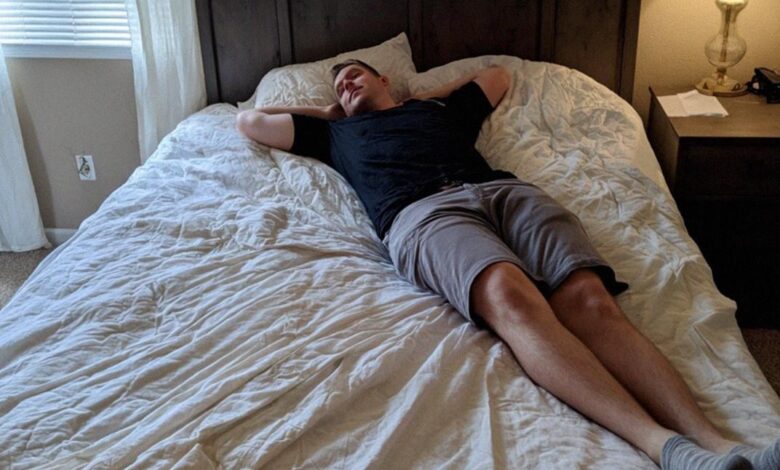 She went to the kitchen, grabbed a roll of painter’s tape, and measured precisely thirty percent of the mattress. She marked the line, then cut the fitted sheet along it. Her side stayed neat, layered, and comfortable. His side — bare, narrow, and rough. She folded his comforter corner sharply and left a single thin blanket and small pillow.