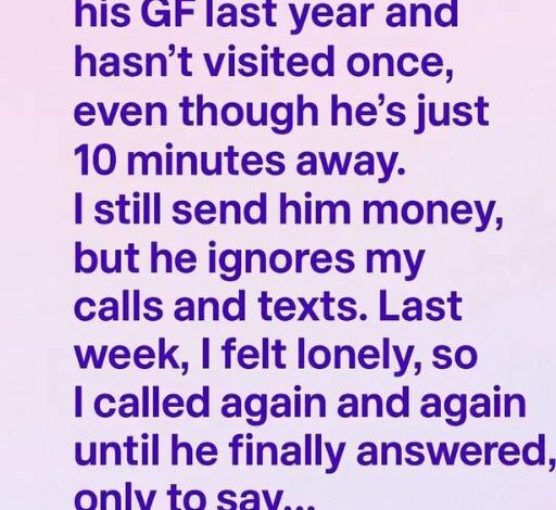 He lived ten minutes away, but it felt like another lifetime. Since moving in with his girlfriend a year ago, my son hadn’t visited once. I kept reaching out—texts, calls, small bank transfers on holidays or random days with a note that said “buy something nice.” All I got back were read receipts and silence. Last week, the weight of that silence pressed so hard on my chest that I called him again and again until he finally answered.