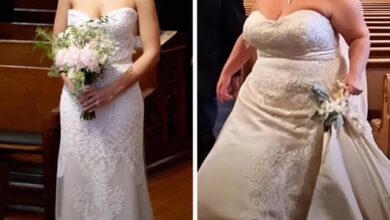 Every woman remembers the moment she finds the dress. For me, it felt like magic — ivory satin that shimmered like moonlight, lace sleeves as soft as breath, and a line of tiny pearl buttons that seemed to glow under the boutique lights. It was elegant, timeless, and everything I’d…