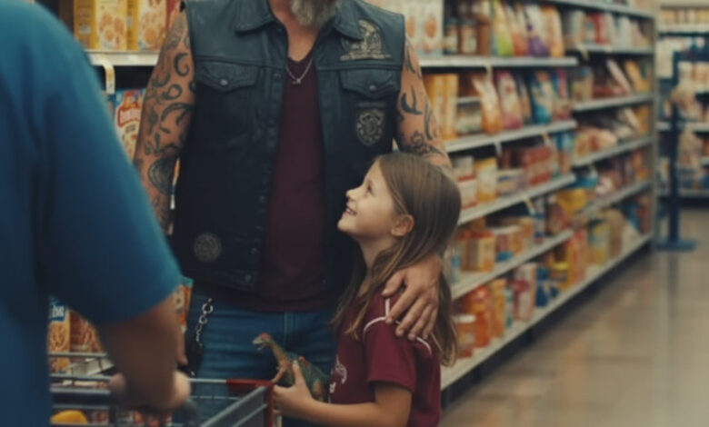 I never expected a Walmart run to change the course of my life. At sixty-three, with a beard gone mostly gray, tattoos climbing up my arms, and old scars mapping out the years I spent raising hell on the open road, I thought I’d seen everything a man could see. Wars. Bar fights. Nights on the highway that felt like they’d swallow you whole. But nothing — absolutely nothing — came close to what happened that afternoon in the cereal aisle.