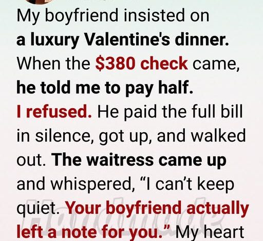 In the “sparkling” atmosphere of a high-end restaurant on February 14, 2026, a “historic” and “volatile” evening unfolded that would eventually become a “monument” to the complexities of modern relationships. The “news alert” of the night wasn’t the extravagant menu or the taller-than-average candles, but a “chilling” $380 bill that nearly “incinerated” a partnership. For one young woman, the evening began with “moral clarity” and a “dignified realism”; she had spent an hour preparing, wearing a simple black dress and a gold necklace that carried the “soul’s signature” of her grandmother. Her partner had insisted on the reservation three weeks in advance, promising an “absolute” and unforgettable experience.