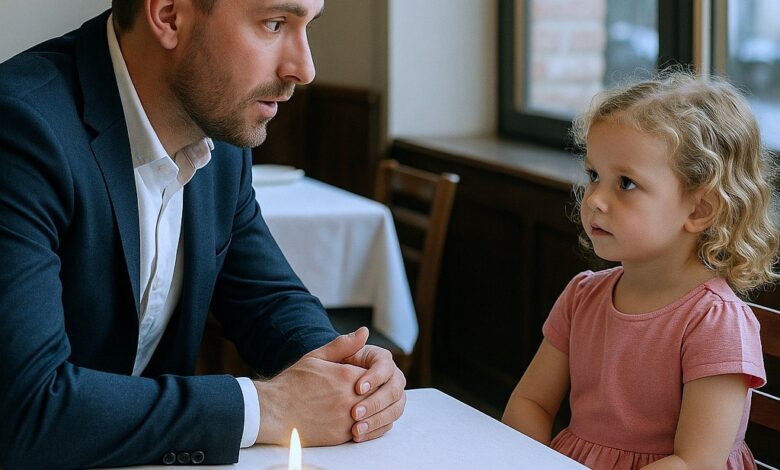 Instead of the woman he expected, a small, vibrant figure marched toward his table. She was a little girl, perhaps five years old, wearing a bright pink dress and blonde curls tied with a matching silk ribbon. She moved with a sense of urgent, unshakeable purpose. Stopping at his side, she looked him up and down with clinical curiosity.