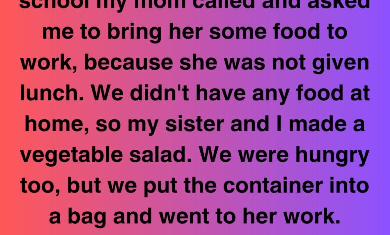 When I got home from school that afternoon, I found a voicemail from my mom asking if I could bring her something to eat at work. She hadn’t had lunch and wouldn’t be home until late. We didn’t have much in the fridge — just some vegetables, a few scraps of leftovers — but my sister and I managed to put together a simple salad. We were hungry too, but we packed it into a container, tied it in a bag, and headed out.