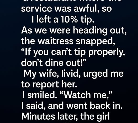 But something in the waitress’s voice didn’t sound like entitlement or arrogance. It sounded like someone fraying at the edges, someone one breath away from falling apart. My wife saw an insult. I saw exhaustion. I put a hand on her shoulder and said, “Just wait a minute.”