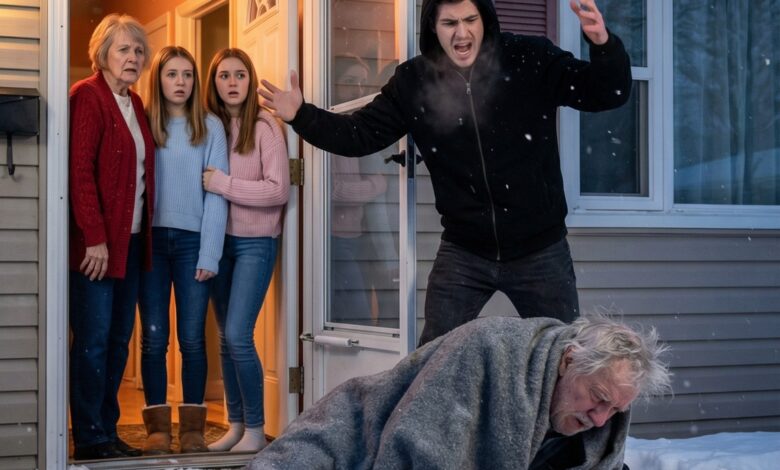 It was freezing. He stood there with a paper bag of clothes and a trench coat that didn’t close properly anymore. He looked smaller. Not older—emptier.